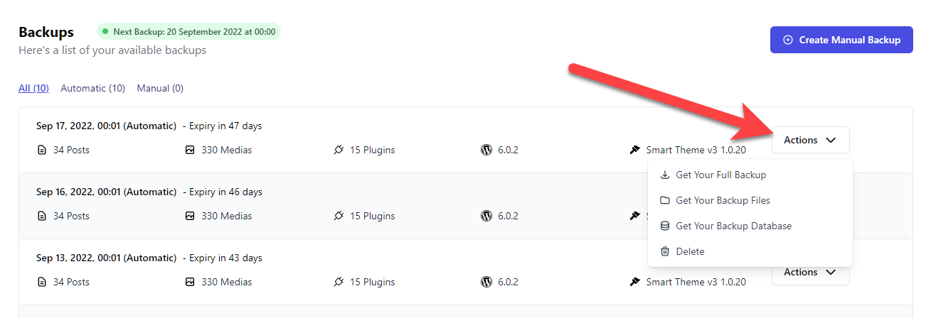 You can also easily access the backups through the dashboard and download them if you need to.